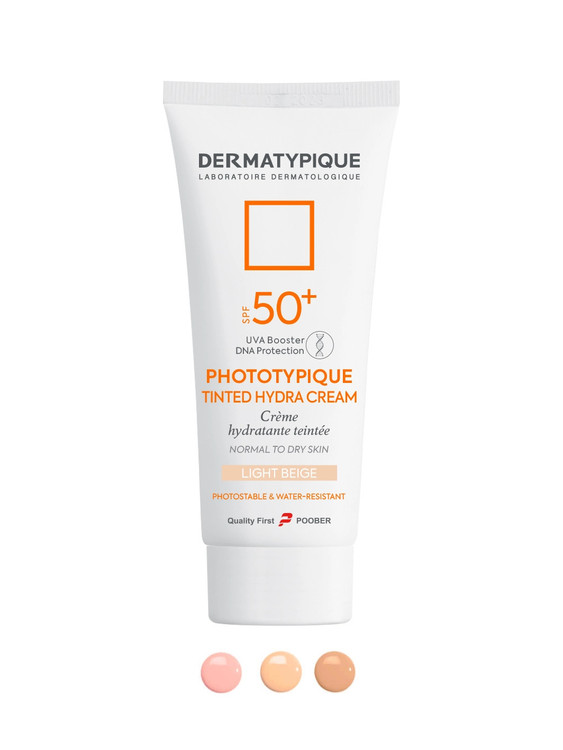 ضد آفتاب درماتیپیک رنگی پوست چرب، دارای SPF 50 و اثر ضد پیری