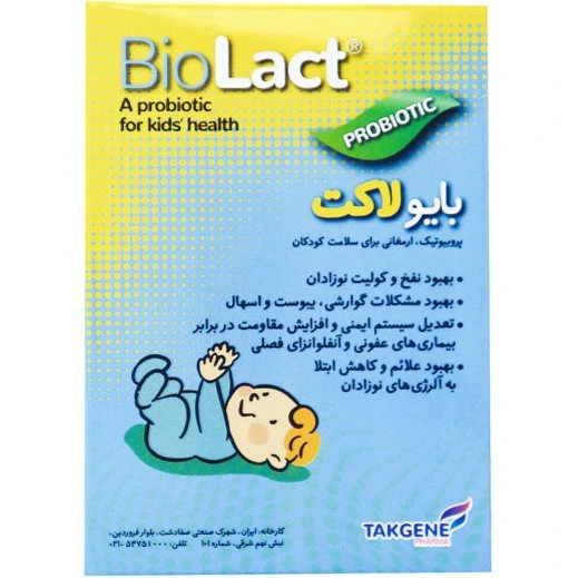 قطره بایو لاکت تک ژن فارما 15 میلی لیتر، حاوی باکتری پروبیوتیک است. از خواص قطره بایو لاکت می توان به بهبود مشکلات گوارشی مانند یبوست، کمک به درمان کولیکنوزادی و کاهش گریه و بی قراری در نوزادان مبتلا به کولیک، کمک به هض غذا، کاهش تکرار اسهال و کوتاه شدن دوره آن، افزایش مقاومت بدن در برابر ابتلا به بیماری ها اشاره کرد.