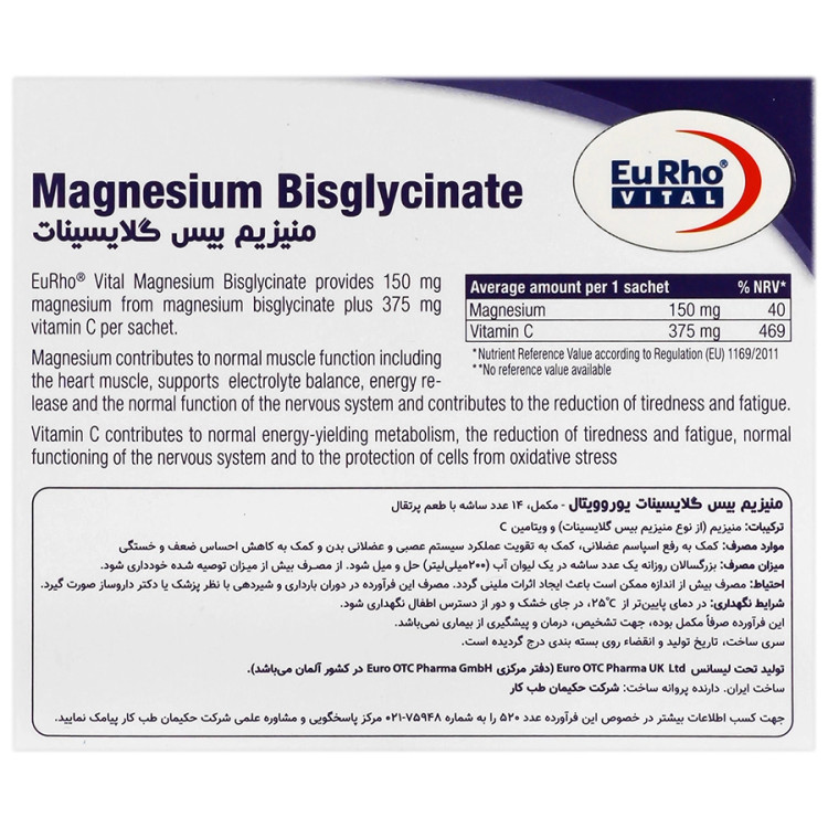 منیزیم بیس گلایسینات یوروویتال 14ساشه ای، با تاثیر بر عملکرد صحیح سیستم عصبی و عضلانی بدن، کاهش اسپاسم و گرفتی عضلات، بهبود خلق و خو و کیفیت خواب و همچنین بهبود عملکرد قلب و عروق نقش مهمی در حفظ سلامت عمومی بدن ایفا میکند. ویژگی برجسته منیزیم بیس گلیسینات یوروویتال، فرم شلاته منیزیم با آمینواسید گلیسین است که موجب جذب بالا و تحمل گوارشی بیشتر در مقایسه با دیگر اشکال منیزیم میشود؛ به همین دلیل گزینهای مناسب برای افرادی است که به علت مشکلات گوارشی قادر به تحمل سایر اشکال مکملهای منیزیم نیستند.