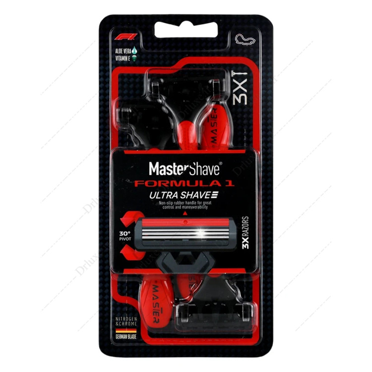 ژیلت سه لبه فرمولا 1 مسترشیو 3 عددی، مناسب برای استفاده آقایان جهت تسهیل اصلاح صورت میباشد. جنس تیغهها ژیلت سه لبه فریدم از نیتروژن و کروم بوده، دارای نوار روان کننده حاوی ویتامین E و آلوئهورا است. سری متحرک، درپوش روی سری خود تراش و دسته ارگونومیک از دیگر ویژگی های این ژیلت است.