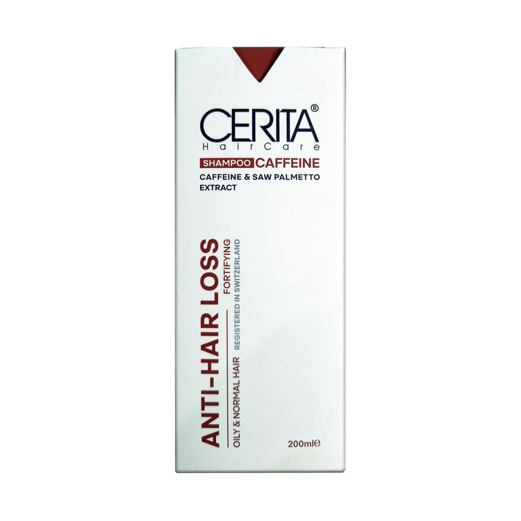 شامپو حاوی کافئین سریتا موی چرب، با دارا بودن ترکیبات موثره گیاهی همانند کافئین، ساوپالمتو، گزنه، بابونه، مریم گلی و سایر ترکیبات می تواند موجب تقویت موی شما شود. شامپو کافئین سریتا به علت وجود کافئین تاثیر چشمگیری در پیشگیری از ریزش مو دارد. با جذب در پوست سر در افزایش جریان خون در فولیکول مو موثر میباشد. ساوپالمتو یک ترکیب آنتی آندروژن گیاهی است که می تواند در کنترل ریزش مو ارثی موثر باشد، همچنین می تواند از کوچک شدن فولیکول مو پیشگیری کرده و طول عمر مو را افزایش دهد.
