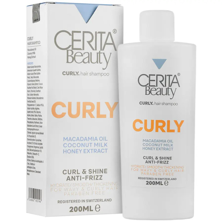 شامپو سریتا مناسب موی فر، با ترکیبات مغذی شیر نارگیل و عصاره عسل، که موجب تغذیه و تقویت موهای فر شده و در باز کردن گره تارهای مو اثرگذار است. افراد دارای موی فر با استفاده از این شامپو، موهای خود را نرم، لطیف و درخشنده می سازند. روغن ماکادمیا موجود در شامپو مناسب موهای فر سریتا بیوتی، با حفظ الگوی فر موها، از خشکی و وز شدن آنها جلوگیری می کند.