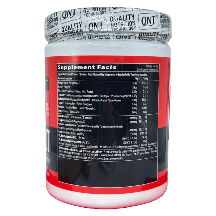 پری ورک اوت کیو ان تی300 گرم، ترکیبات موجود در پری ورک اوت شامل بتا آلانین، آرژنین آلفا کتوگلوتارات و کراتین مونوهیدرات است که هرکدام نقش مهمی در بهبود توان و استقامت عضلانی دارند. طعم دلپذیر میوههای قرمز پری ورک اوت کیو ان تی، مصرف آن را خوشایند میسازد. پری ورک اوت به افزایش قدرت و استقامت عضلانی، افزایش سطح انرژی جهت مصرف قبل از تمرین ورزشی، افزایش کارایی و عملکرد بدنسازان حین تمرینات سنگین و طولانی کمک کرده، علاوه بر این در کاهش خستگی و ریکاوری بهتر ورزشکاران بعد از تمرین موثر است.