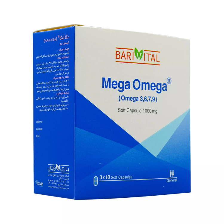 سافت ژل مگا امگا باریویتال 30 عددی، به دلیل وجود مقادیر زیاد اسیدهای چرب غیر اشباع، اسیدهای چرب مورد نیاز بدن را تامین کرده و همچنین خاصیت آنتی اکسیدانی دارد. به طور کلی، اسید های چرب، ترکیبات حیاتی در بدن بوده و در بسیاری از بافت ها یافت می شوند. اسید چرب های موجود در بدن نقش های متفاوتی ایفا می کنند که برخی از مهم ترین این نقش ها به شرح زیر است: نقش در ساختار غشا سلول ها مانند ساختار سلول های عصبی و ... منبع مناسب انرژی برای سلول ها و ساخت واسطه های التهابی