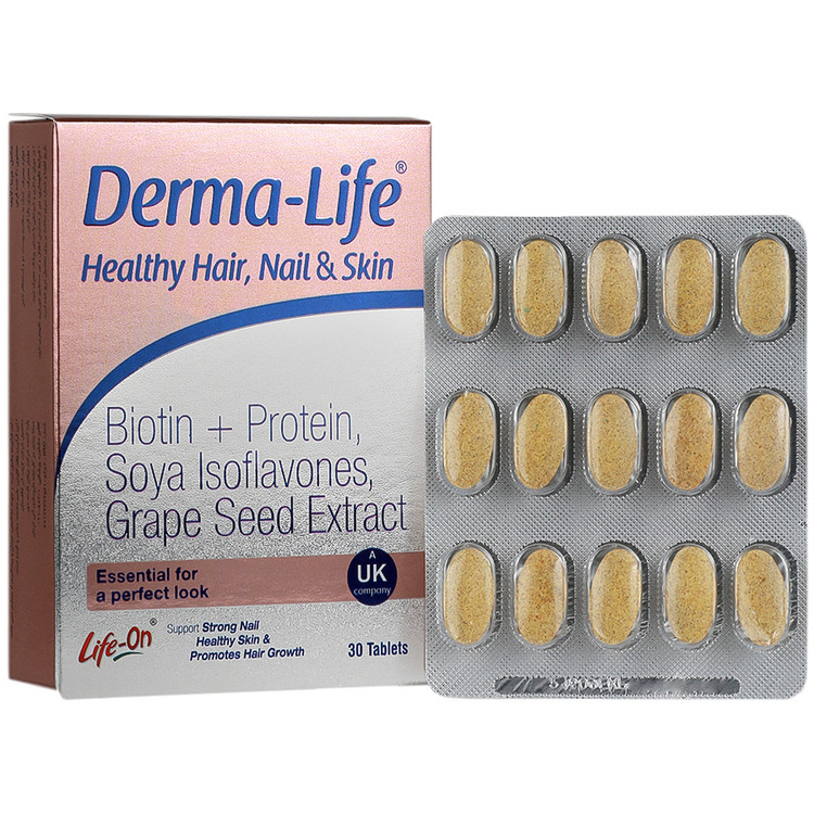 قرص درما لایف لایف آن 30 عددی، سرشار از ریز مغذیهای ضروری جهت حفظ سلامت و زیبایی پوست، مو و ناخنها است. این مکمل از ریزش مو جلوگیری نموده و به رشد تقویت آن نیز کمک میکند. از طریق افزایش کلاژن سازی و تامین ویتامینها و املاح ضروری در جوانسازی پوست و رشد و استحکام ناخنها نیز بسیار موثر است. قرص درما لایف با در برداشتن طیف گسترده ای از ویتامین های مختلف، مواد معدنی، کلاژن هیدرولیز شده، ایزوفلاوون های سویا، فلاونوییدهای هسته انگور و بتاکاروتن، در حفظ سلامت و جوانی پوست، رشد بهتر موها و استحکام ناخن ها موثر بوده و فاقد هر گونه، طعم دهنده، گلوتن و مخمر است.