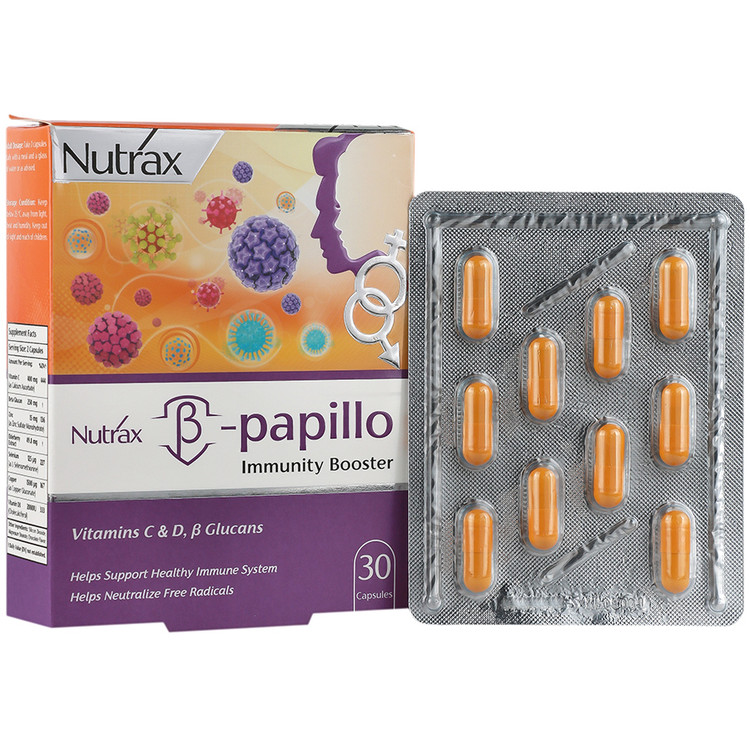 کپسول بتا پاپیلو نوتراکس با ترکیبات آنتی اکسیدانی به سلامت سیستم ایمنی کمک نموده، باعث پیشگیری از ابتلا به سویههای مختلف ویروس HPV، درمان ضایعات پوستی و زگیل تناسلی نیز میشود. بتا پاپیلو حاوی ویتامین C، بتاگلوکان، زینک به فرم زینک سولفات منوهیدرات، عصاره الدربری، سلنیوم، مس و ویتامین D است و علاوه بر اعمال اثرات آنتی اکسیدانی و حفاظت از سلول ها در برابر آسیب های اکسیداتیو، به کاهش التهاب، افزایش مقاومت بدن در برابر انواع کم خطر و پر خطر ویروس HPV، بهبود زگیل تناسلی و تقویت سیستم ایمنی کاربرد دارد.