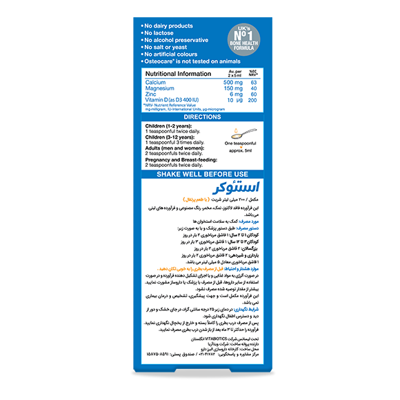 شربت استئوکر ویتابیوتیکس حاوی کلسیم، منیزیم، روی و ویتامین D3 است که در تقویت و استحکام استخوانها و دندانها و جلوگیری از پوکی استخوان موثر است، این مکمل میتواند به حفظ سلامت مادر و جنین در دوران بارداری کمک نماید. ترکیبات موجود در شربت استئوکر جهت پیشگیری از راشیتیسم (نرمی استخوان) در کودکان و استئوپروز (پوکی استخوان) در بزرگسالان نقش مهمی دارد.