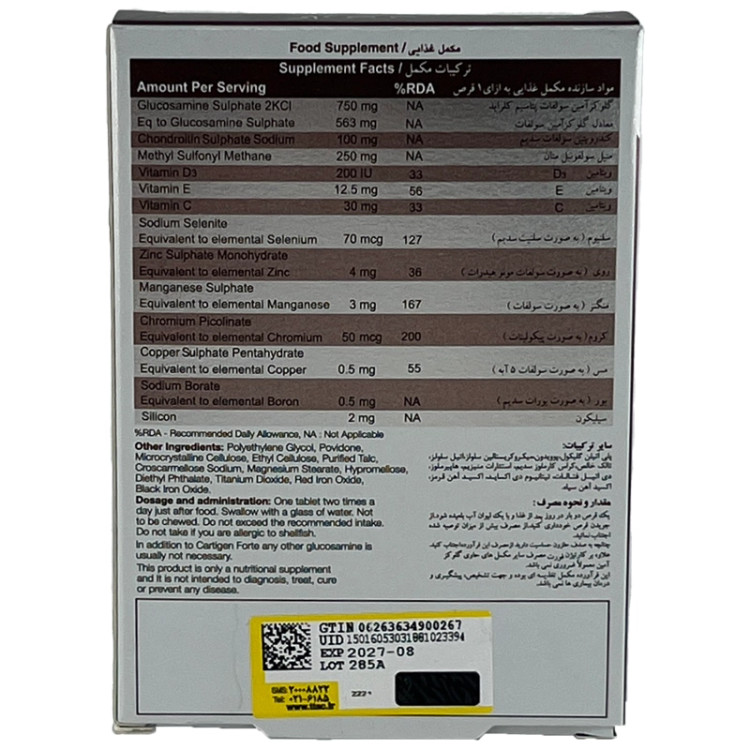 قرص کارتیژن فورت نیچر اونلی با فرمولاسیونی پیشرفته برای سلامت مفاصل طراحی شده است، که حاوی ترکیباتی ضروری می باشد که در کمک به درمان آرتروز و پیشگیری از حادتر شدن شرایط بیماری نقش بسزایی دارد. یک مکمل غذایی غضروفساز حاوی گلوکزآمین، کندرویتین، متیل سولفونیل متان، ویتامینها و مواد معدنی است که بهمنظور حفظ سلامت مفاصل و غضروفها، کاهش التهاب و درد مفاصل، بهبود محدودیت حرکتی ناشی از استئوآرتریت، کمک به بهبود علائم آرتریت روماتوئید، تقویت غضروفها و کمک به بهبود آسیبهای مفصلی در ورزشکاران مورد استفاده قرار میگیرد.