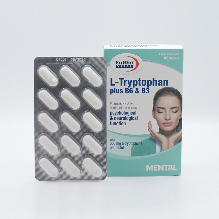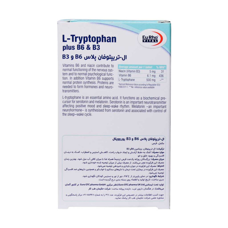 قرص ال تریپتوفان پلاس B6 وB3 یوروویتال به واسطه دارا بودن ویتامینهای گروه B به حفظ آرامش، ایجاد خواب راحت، کاهش استرس و اضطراب، درمان افسردگی و بهبود خلق و خو کمک میکند. یک مکمل تخصصی برای کمک به حفظ سلامت سیستم عصبی و تنظیم خلق و خو می باشد. قرص ال تریپتوفان پلاس حاوی 500 میلی گرم آمینو اسید ال تریپتوفان از دسته آمینواسید های ضروری می باشد که بدن قادر به ساخت آن نبوده و باید ال تریپوفان مورد نیاز خود را از طریق منابع غذایی سرشار از پروتئین و یا مکمل های تغذیه ای دریافت نماید. کمبود ال تریپتوفان می تواند با مشکلات خلقی و عصبی در ارتباط باشد.