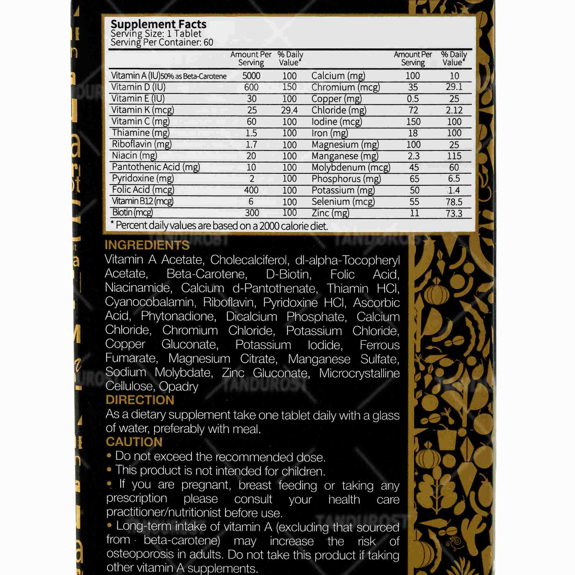 1. : حاوی مجموعه کاملی از ویتامینها و مواد معدنی مورد نیاز روزانه