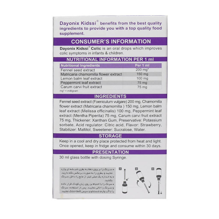 قطره کیدزی کولیک دایونیکس فارما فرآورده کاملا طبیعی که در بهبود کولیک در نوزادان و کودکان موثر است. طعم توت فرنگی این قطره برای کودکان بسیار لذت بخش است و پذیرش آن را برای کودک بیشتر کرده است. قطره کیدزی کولیک، یک فراورده گیاهی با کیفیت است که در راستای بهبود علائم کولیک و دل پیچه در نوزادان و کودکان فرموله شده است.