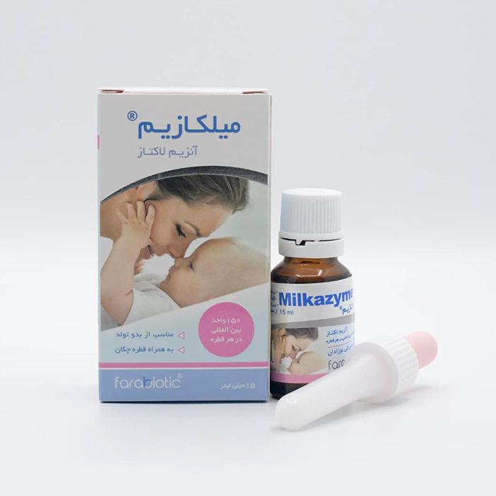 قطره میلکازیم فرابیوتیک، فرآورده خوراکی شرکت فرادارو فن آور مهر حاوی آنزیم گوارشی لاکتاز بوده و در راستای کمک به تسهیل هضم قند لاکتوز در نوزادان تازه به دنیا آمده، کاهش کولیک و همچنین عوارض گوارشی ناشی از عدم تحمل لاکتوز، با فرمولاسیونی فاقد هر گونه طعم دهنده، شیرین کننده، تالک و گلوتن به طراحی شده است. قطره میلکازیم در بطری های شیشه ای 15 میلی لیتری دارای قطره چکان عرضه شده است.