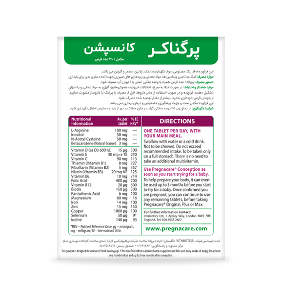 قرص پرگناکر کانسپشن ویتابیوتیکس 30 عددی