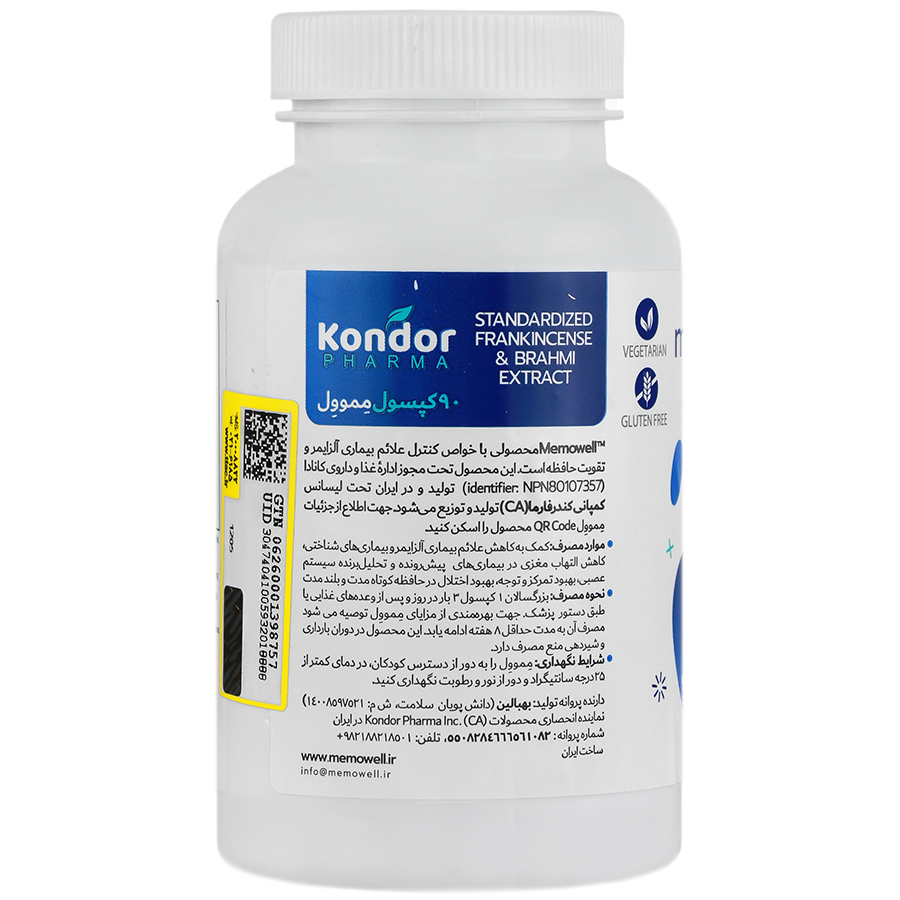 + موارد بیشترمکمل تخصصی تقویت کننده حافظه دارای ترکیبات بیولوژیکی فعالی نظیر ویتامین د3، عصاره صمغ کندر با فرمولاسیون منحصربهفرد ™K-Vie و گیاه باکوپا برای حفظ سلامت مغز، پشتیبانی از عملکرد شناختی و کمک به کاهش علائم مرتبط با اختلالاتی نظیر آلزایمر است. مموول به طور اختصاصی برای تقویت حافظه تولید شده است و از ترکیبات ضد التهابی قوی مانند بوسولیک اسید و باکوزیدهای عصاره باکوپا بهره گرفته است. در نهایت به دلیل اثربخشی آن در کاهش التهاب، بهبود حافظه، ممانعت از تجمع پروتئین های آسیب زای آمیلوئید بتا و محافظت از سلول های عصبی، گزینه مناسبی برای مبتلایان به آلزایمر یا افراد مستعد این بیماری، در نظر گرفته میشود.