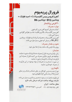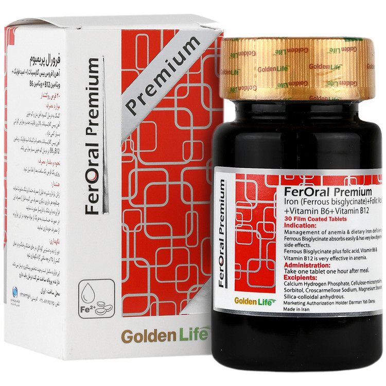 قرص فرورال پریمیوم گلدن لایف با ترکیبات منحصر به فرد خود شامل آهن ، فولیک اسید، ویتامین B12 و ویتامین B6 راهکاری موثر جهت درمان کم خونی و کمبود آهن است. فرم فروس بیس گلایسینات آهن به کاهش عوارض گوارشی و جذب بیشتر آهن کمک میکند. همچنین یک مکمل آهن است که جهت کمک به درمان کمبود آهن بدن و کم خونی مورد استفاده قرار میگیرد. فرورال پریمیوم، علاوه بر آهن بیسگلایسینات، حاوی فولیک اسید و ویتامین های ب12 و ب6 است که موجب جذب بالاتر آهن شده و در بهبود کم خونی فقر آهن و افزایش توان عمومی بدن اثرات مفیدی دارد.