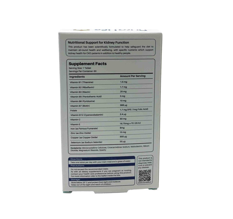 قرص مولتی ویتامین دورالایف فاران شیمی علاوه بر تامین ویتامینها و مواد معدنی مورد نیاز بدن بیماران کلیوی، سبب تقویت سیستم ایمنی و عصبی آنها میشود. نوعی مکمل مولتی مینرال مخصوص افراد مبتلا به بیماریهای مزمن کلیوی است. از آنجا که بیماران کلیوی به علت محدودیتهای رژیمی و همچنین کاهش اشتها در معرض خطر کمبود ریز مغذیها هستند، قرص دورالایف کیدنی با داشتن برخی ریزمغذیهای ضروری، در پیشگیری از کمبود و علائم ناشی از کمبود آنها موثر است.