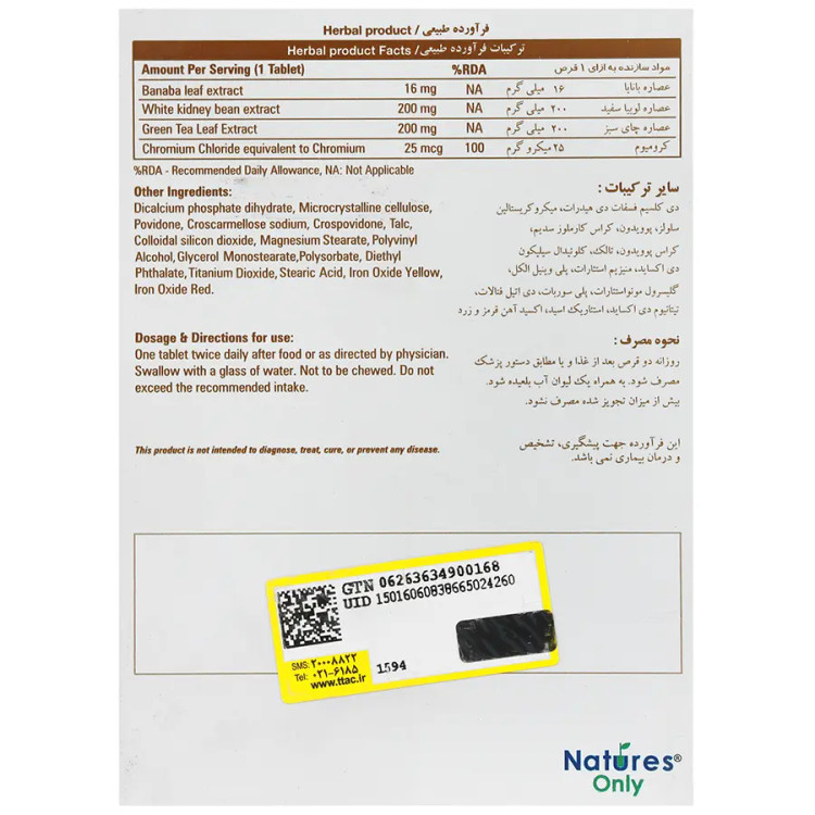 فاقد گلوتن، سویا، نشاسته و شکر، مخمر و هرگونه طعم دهنده و نگهدارنده