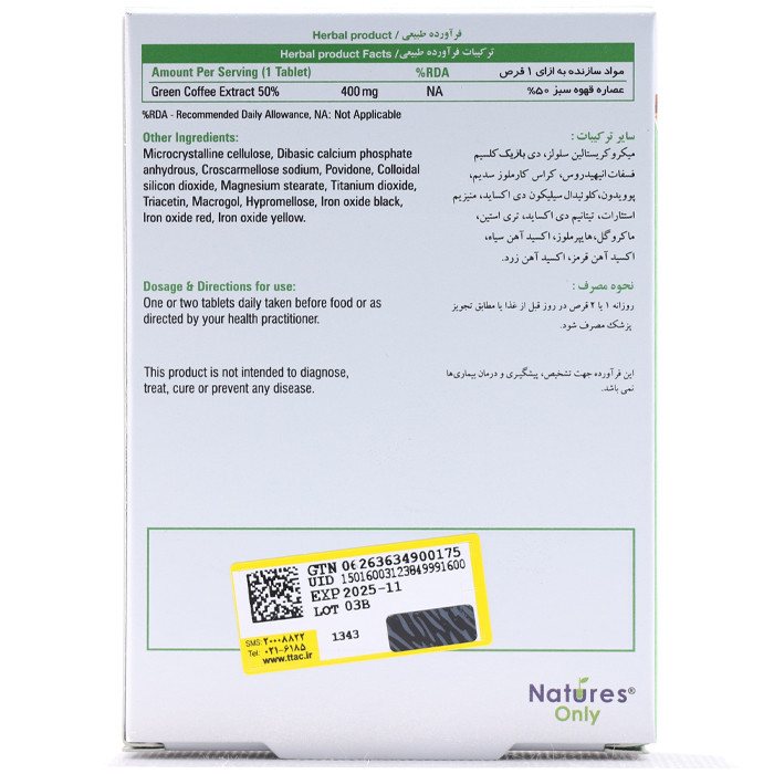 ۲.: حاوی عصاره قهوه سبز