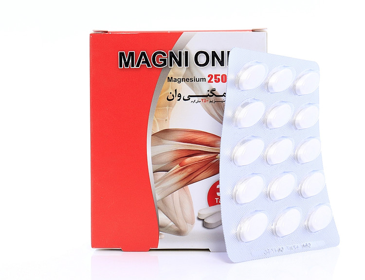 1.: قرص مگنی وان حاوی 250 میلی گرم منیزیم المنتال برای بهبود عملکرد عضلات