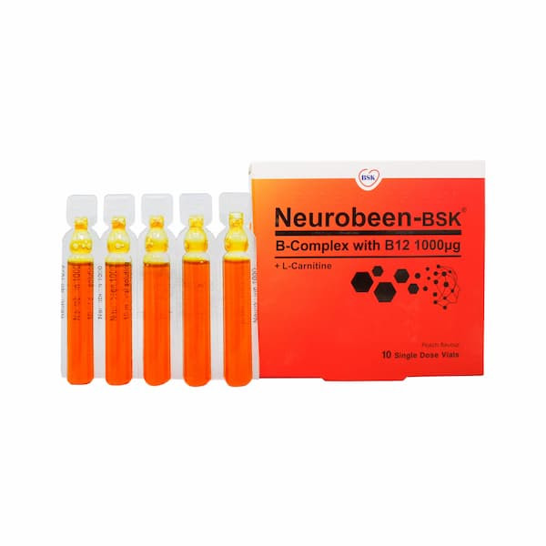 1.: محلول خوراکی نوروبین، ب کمپلکس حاوی 10 ویال خوراکی تامین کننده ویتامین های گروه B (B1، B2، B3، B6، B12 و بیوتین) به همراه ال-کارنیتین
