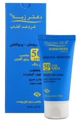 1.: ضد آفتاب مردانه دکتر ژیلا، موثر در محاظت از پوست در برابر اشعههای مضر آفتاب