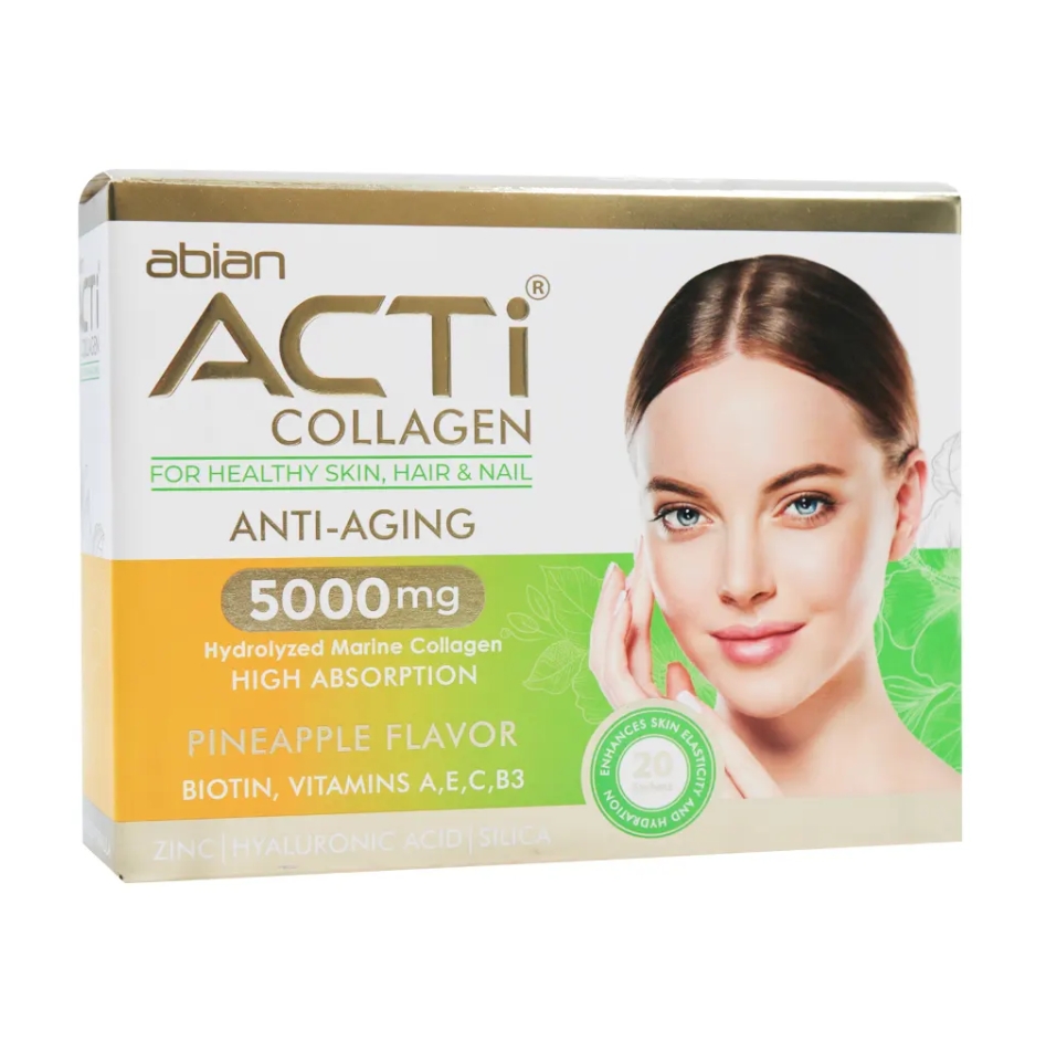 1.: ساشه اکتی کلاژن ابیان دارو برای تامین کلاژن مورد نیاز بدن و حمایت از سلامت پوست، مو و ناخن استفاده میشود و به طور ویژه برای افرادی مناسب است که با کاهش استحکام پوست، خشکی، افت شادابی یا شکنندگی ناخنها مواجه هستند.