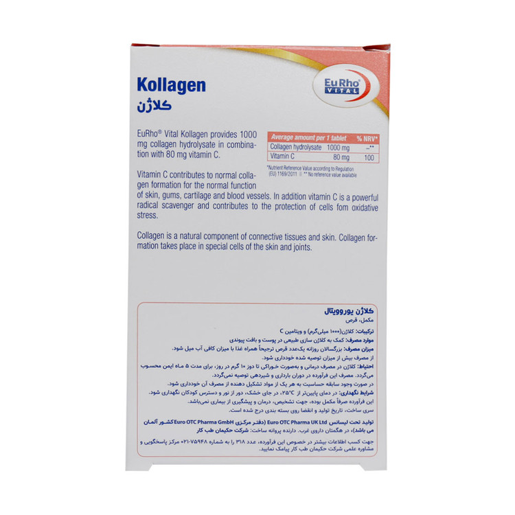 حاوی 1000 میلیگرم کلاژن هیدرولیز شده و 80 میلیگرم ویتامین C