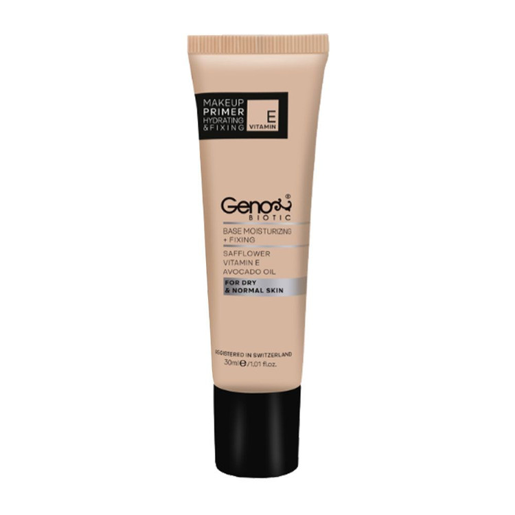 پرایمر ژنوبایوتیک مخصوص پوستهای خشک و معمولی، یکی از محصولات ژنوبایوتیک است که به عنوان یک زیرساز و یکدست کننده مناسب برای آرایش و آمادهسازی پوست صورت بهکار میرود. با استفاده از این پرایمر دیگر نیازی به استفاده ی مداوم از کرم پودرهایی با کاور بالا که بافت سنگینی داشته و در طول روز جلوی تنفس سلولهای پوست تان را میگیرند، ندارید. پرایمر رطوبترسان و فیکس کننده مخصوص پوست های خشک و معمولی ژنوبایوتیک، با استفاده از برترین و جدیدترین ماده موثره پوشاننده منافذ پوست، رطوبت پوست را بهطور کامل حفظ میکند و آرایشتان را در طول روز ماندگار و زیبا میسازد. این محصول با کیفیت، بافت نرم و سبکی دارد و آرایش را بر روی پوست بهخوبی پخش میکند و خطوط ریز پوست را میپوشاند. همچنین با دارا بودن آنتی اکسیدانهای قوی و ویتامینهای A، C، E، از پوسته پوسته شدن صورت جلوگیری میکند.