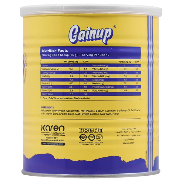 1.: گین آپ کودکان با نسبت کربوهیدرات به پروتئین 3.5 به 1 مناسب برای افزایش وزن کودکان بالای 2 سال