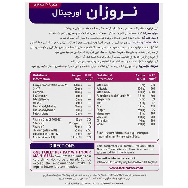 1.: قرص نروزان، مکمل موثر در تقویت حافظه و افزایش تمرکز به دلیل فرمولاسیون جامع ویتامین مینرالی و عصاره جینکو