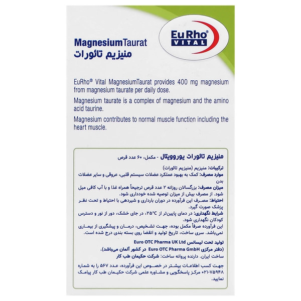 2.: حاوی 400 میلی گرم منیزیم تائورات