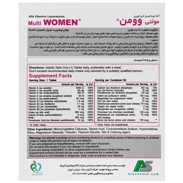 مولتی وومن، مکمل مولتی ویتامین مینرال تخصصی بانوان