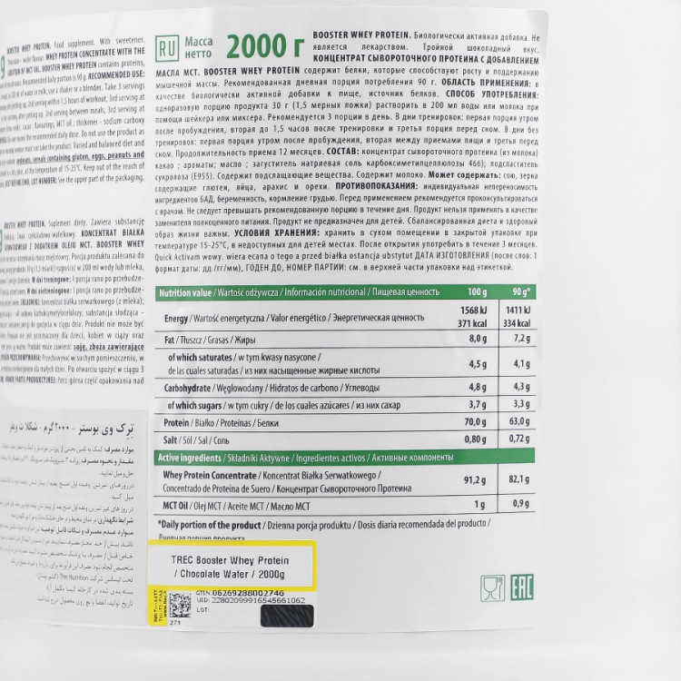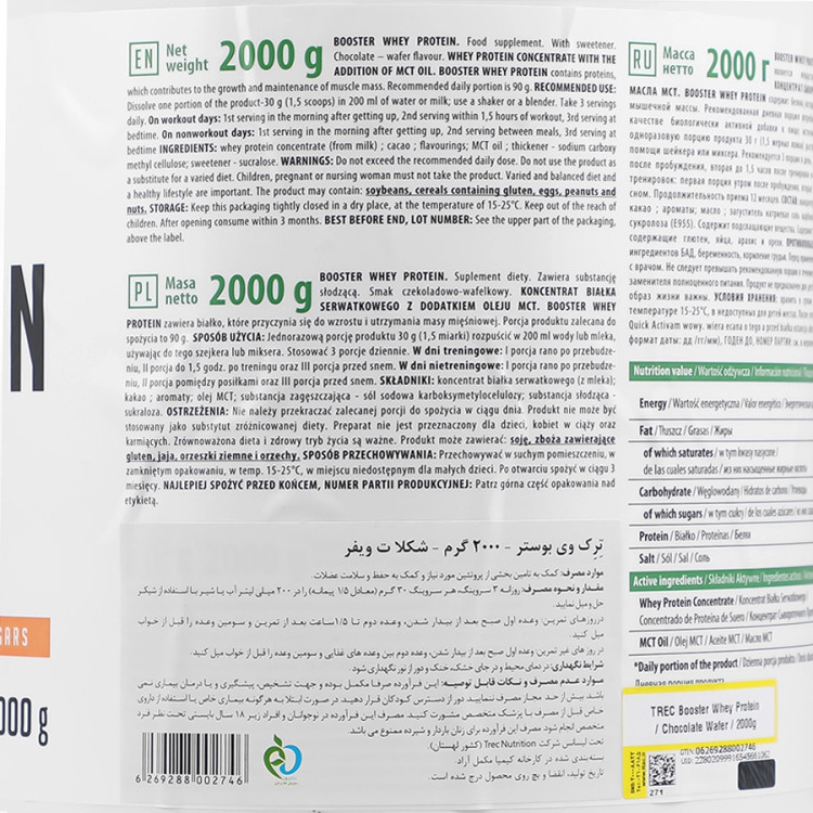 1.: وی بوستر ترک، حاوی 21 گرم پروتئین وی کنسانتره در هر سروینگ برای رشد عضلانی