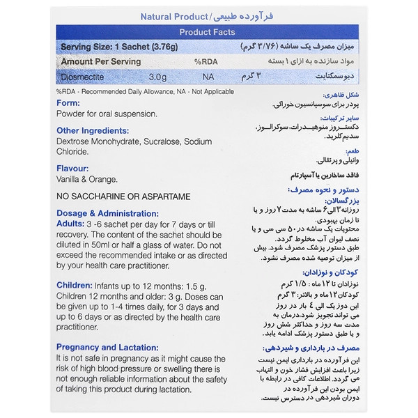 ساشه بایومکتا، فراوردهای طبیعی حاوی 3 گرم دیواسمکتیت به ازای هر ساشه