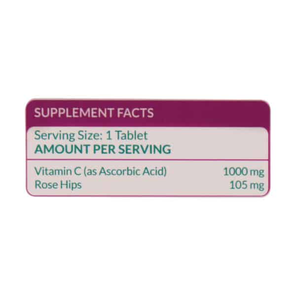 ۲.: قرص ویتامین سی رزهیپس، کمک کننده در ساخت کلاژن و خاصیت ارتجاعی پوست