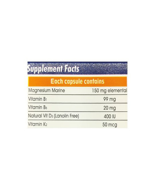 - حاوی 150 میلی گرم منیزیم خالص به ازای هر کپسول
